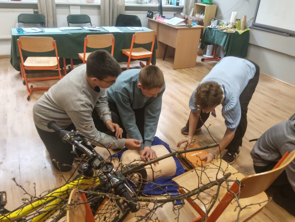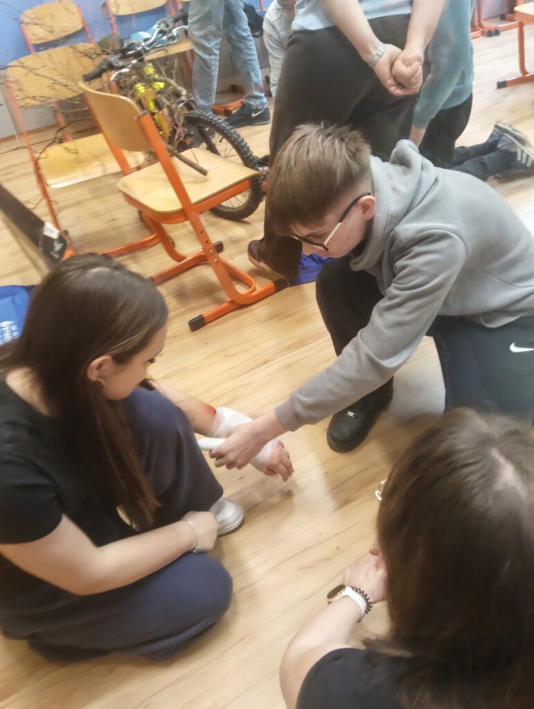Dodatkowo uczniowie skorzystali z zajęć prowadzonych przez specjalistę z zakresu farmacji dotyczących podawania leków ratujących życie oraz wzięli udział w warsztatach z zakresu pierwszej pomocy z wykorzystaniem technologii VR. Opiekunem naszej drużyny była pani Magdalena Kapłan.