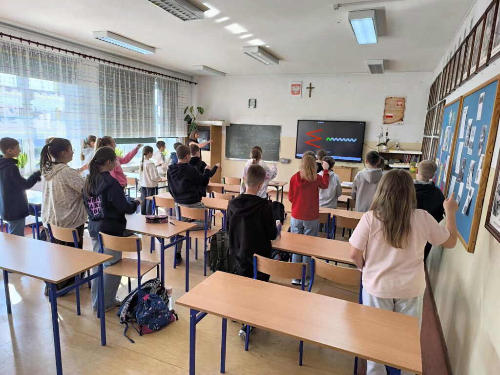 Nie zabrakło również aktywności ruchowej przy muzyce oraz ćwiczeń poprawiających dykcję. Dużym zainteresowaniem cieszyła się część praktyczna, w której uczniowie rozwiązywali różnorodne zagadki i łamigłówki.