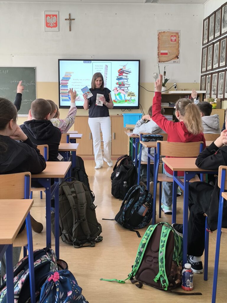 Zajęcia przebiegły w miłej i twórczej atmosferze, a uczniowie chętnie angażowali się w proponowane aktywności. Mamy nadzieję, że zdobyte doświadczenia zachęcą ich do częstszego sięgania po książki i rozwijania swoich pasji.