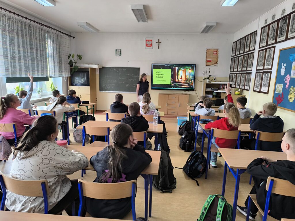 Wyjątkowym elementem zajęć było spotkanie z zaproszonym gościem – dyrektorem biblioteki publicznej, który opowiedział o działalności biblioteki oraz zachęcił uczniów do korzystania z jej oferty. Uczniowie dowiedzieli się, że biblioteka to nie tylko książki, ale także miejsce inspirujących spotkań i ciekawych wyzwań.