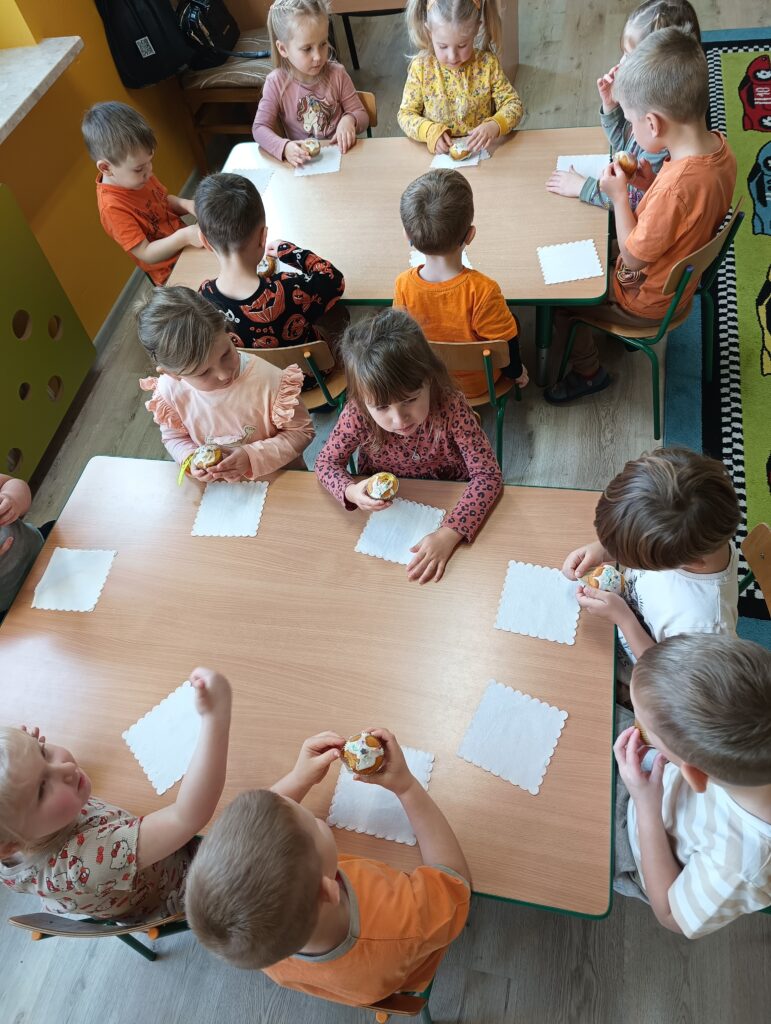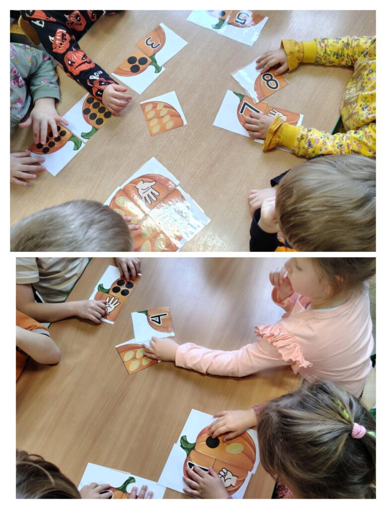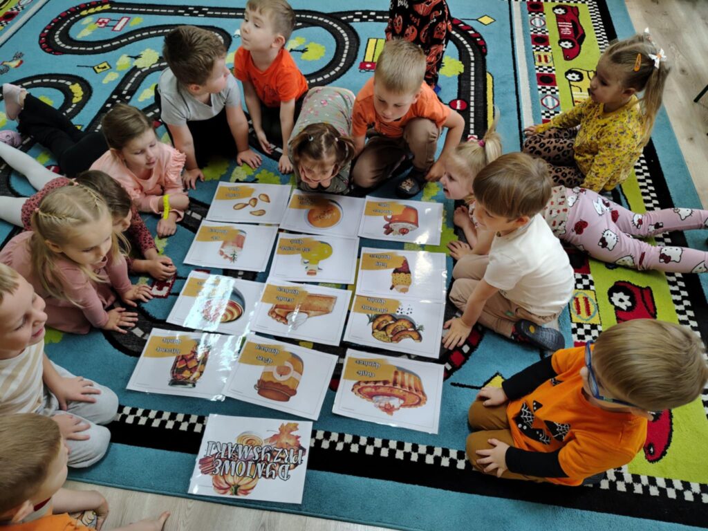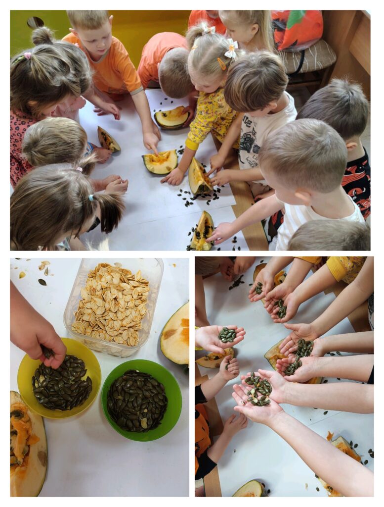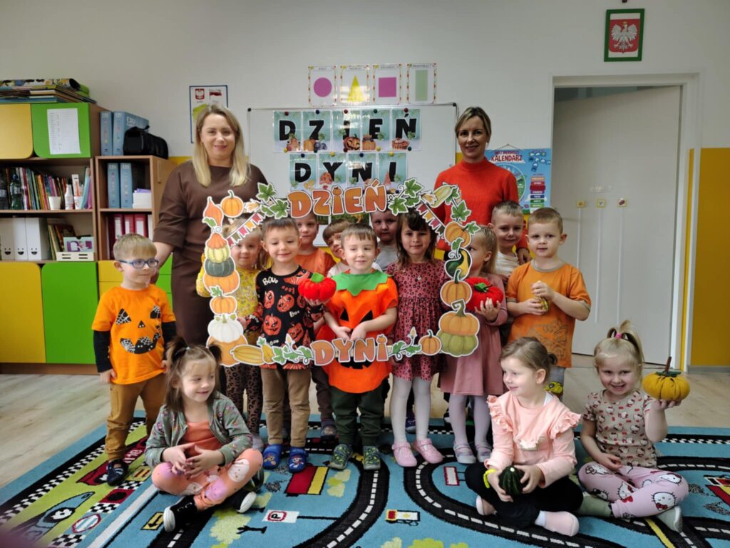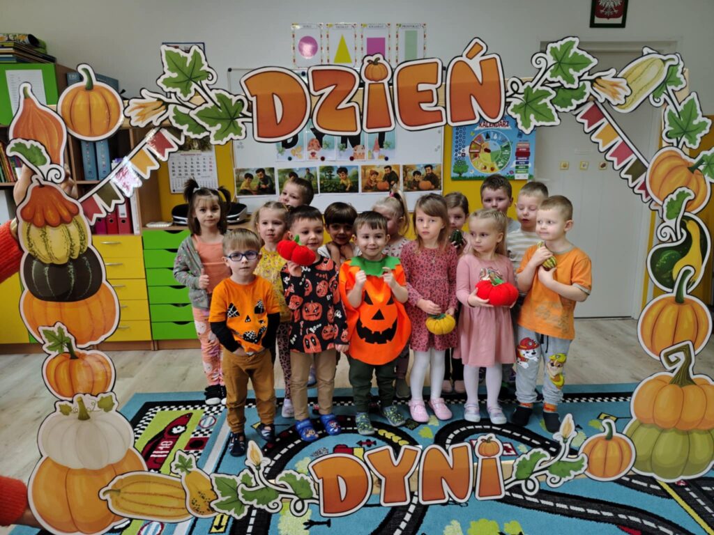 Dzieci dowiedziały się jak wartościowym warzywem jest dynia i jakie potrawy można z niej przyrządzić. Poznały cykl rozwoju dyni i warunki, w których wyrasta na podstawie opowiadania i historyjki obrazkowej. Wzięły udział w sensorycznym poznawaniu warzywa: oglądały, dotykały różnej wielkości i różnego ubarwienia dynie, wydrążały pestki oraz bawiły się miąższem. Próbowały specjalnie przygotowanych na ten dzień przysmaków: pomarańczowych dyniowych babeczek i zdrowych pestek. Była również dyniowa matematyka i zabawy ruchowe z warzywem. Zadowolone miny dzieci, to dowód na to, że był to dzień dobrej zabawy, a przy okazji również nauki i promocji zdrowego odżywiania się.