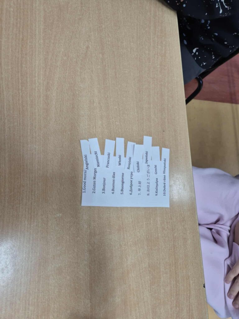 Szkolne znawczynie języków obcych, nauczycielki Swietłana Rowczenia i Sabina Dencikowska prowadziły w tym dniu bardzo ciekawe zajęcia w różnych klasach podczas których „kursanci” mogli się nauczyć witać i przedstawiać się w pięciu różnych językach, poznać kulturę dziesięciu państw europejskich, posłuchać piosenkę „ Kolorowy wiatr” z bajki Pocahontas oraz piosenkę „Flowers” Miley Cyrus w wersjach wielojęzykowych, wystąpić w roli osoby poprawiającej błędy językowe czy też rozwiązać test językowy wirtualny na Kahoot.it.
