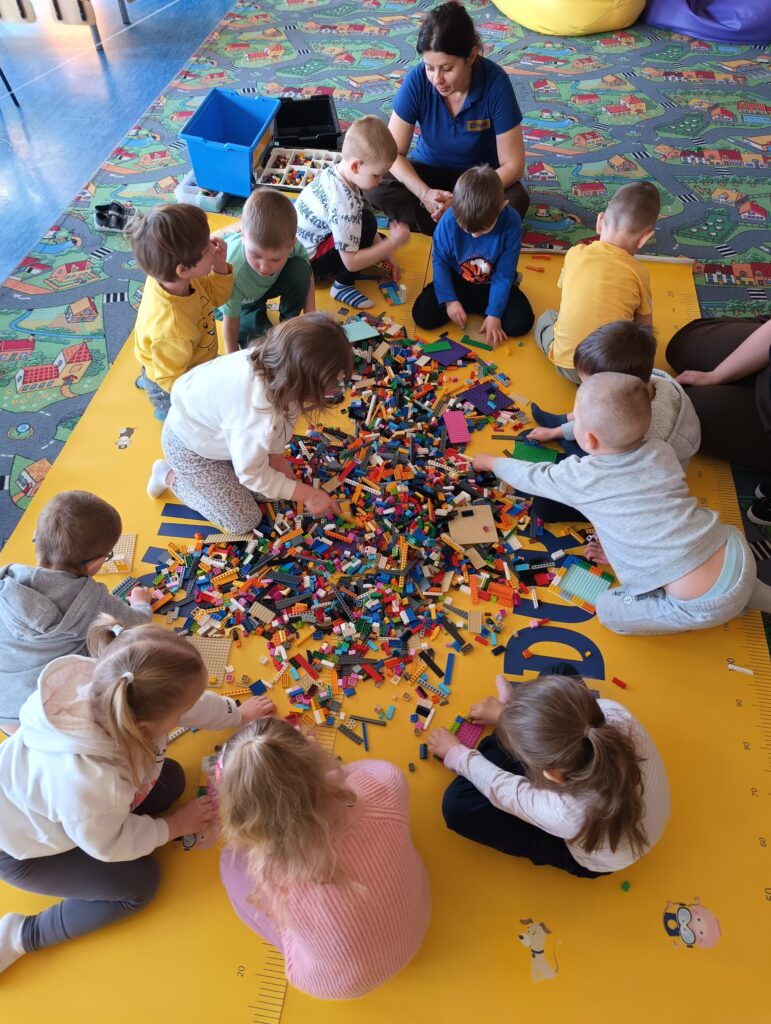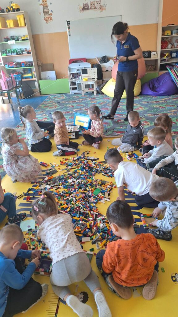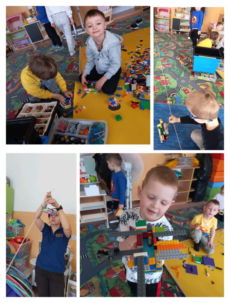 Dnia 23 kwietnia przedszkolaki miały okazje wziąć udział w warsztatach z wykorzystaniem klocków Lego. Były to zajęcia, które łączyły twórczą zabawę z nauką i rozwojem logicznego myślenia. Warsztaty rozpoczęły się krótkim wprowadzeniem, podczas którego dzieci zapoznały się z zasadami pracy. Następnie budowały konstrukcje z klocków. Na koniec każda konstrukcja zamieniała się w wagonik zjeżdżający po linie. Dzięki pracy z ulubionymi klockami dzieci budowały nie tylko konstrukcje, ale rozwijały też swoje kompetencje techniczne, społeczne i poznawcze, usprawniały cierpliwość i koncentrację uwagi. Agata Woźniak