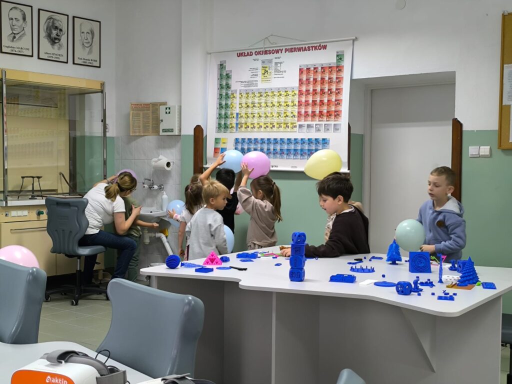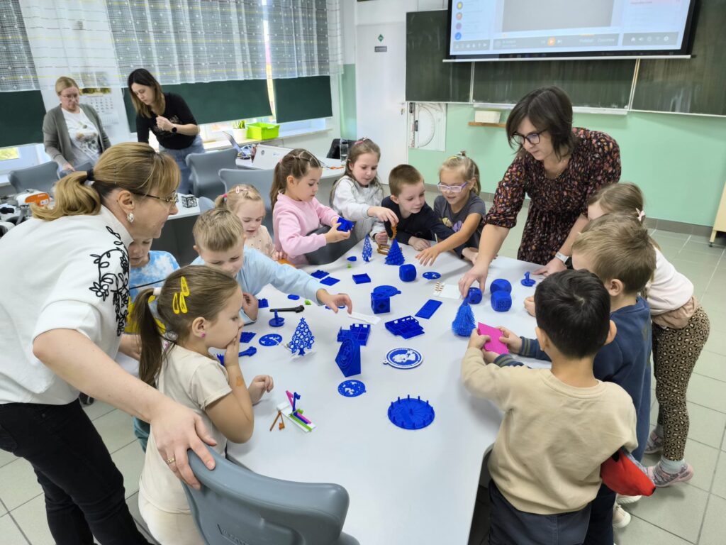 Zwieńczeniem lekcji była wystawa wydruków 3D. Dzieci wraz z opiekunami mogły nie tylko obejrzeć przygotowane modele, ale również sprawdzić, jak działają przedmioty wydrukowane na szkolnej drukarce 3D. Wśród eksponatów znalazły się autorskie projekty uczniów i nauczycieli naszej szkoły, będące przykładem kreatywnego i praktycznego wykorzystania nowych technologii w edukacji.