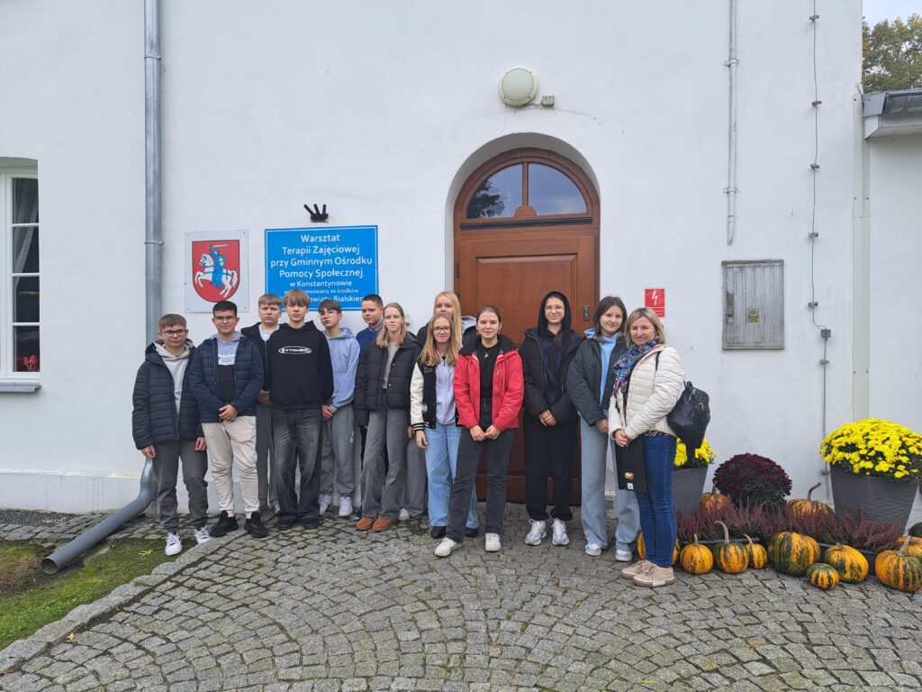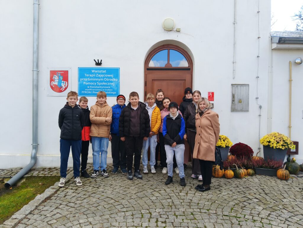 W ramach lekcji edukacji zdrowotnej uczniowie klas 6a,6b,7a i 7b wraz z p. Magdaleną Kapłan odwiedzili Warsztat Terapii Zajęciowej w Konstantynowie. Uczniowie dowiedzieli się jak osoby z niepełnosprawnością w stopniu umiarkowanym i znacznym spędzają czas. W jakich pracowniach pracują i jakie zadania wykonują. Pani kierownik Monika Hawryluk oprowadziła uczniów i opowiedziała jak wygląda dzień uczestników w poszczególnych pracowniach. Dziękujemy Pani Monice, całej kadrze i uczestnikom za miłe przyjęcie w murach Warsztatów Terapii Zajęciowej.