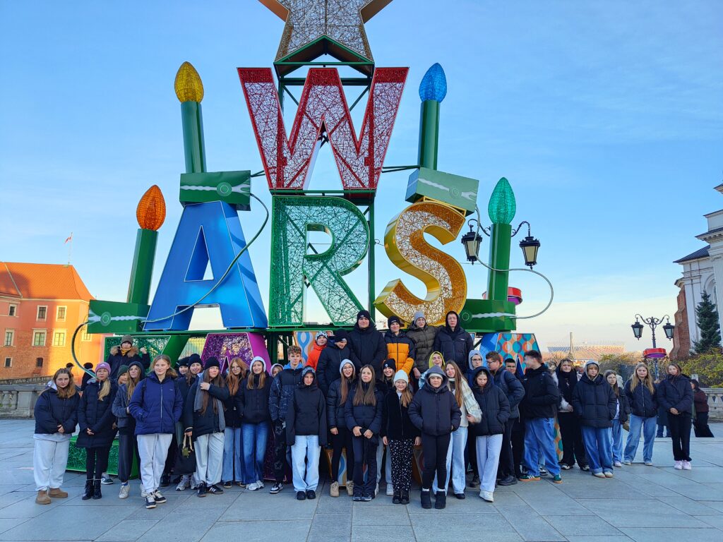 28 listopada 2025 roku uczniowie klas 8 przy wsparciu młodszych koleżanek i kolegów z klas 5 – 7 wybrali się na długo wyczekiwaną wycieczkę do Warszawy. Celem wyjazdu było zwiedzanie stolicy z nieco innej strony – poprzez poznanie, umiejętności, integrację, emocje i dobrą zabawę.