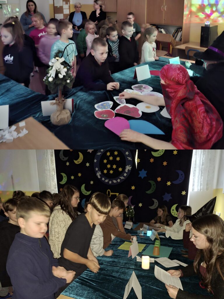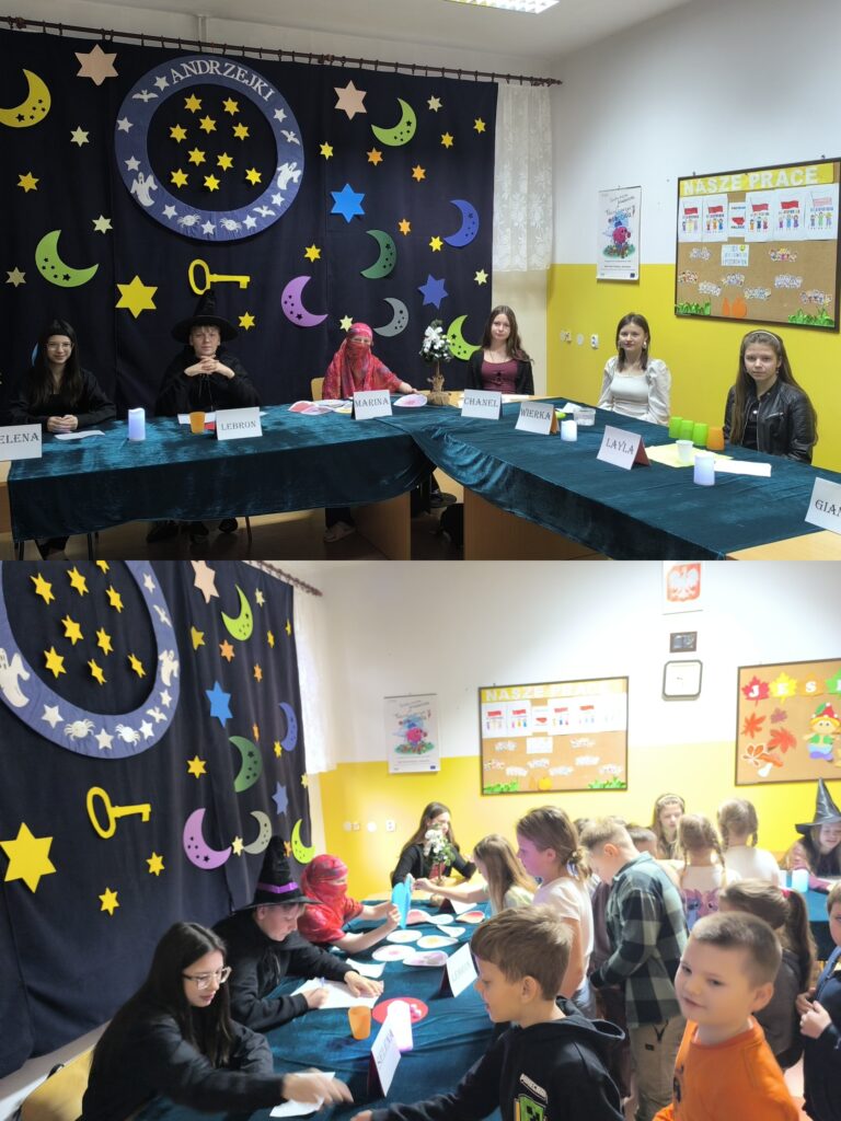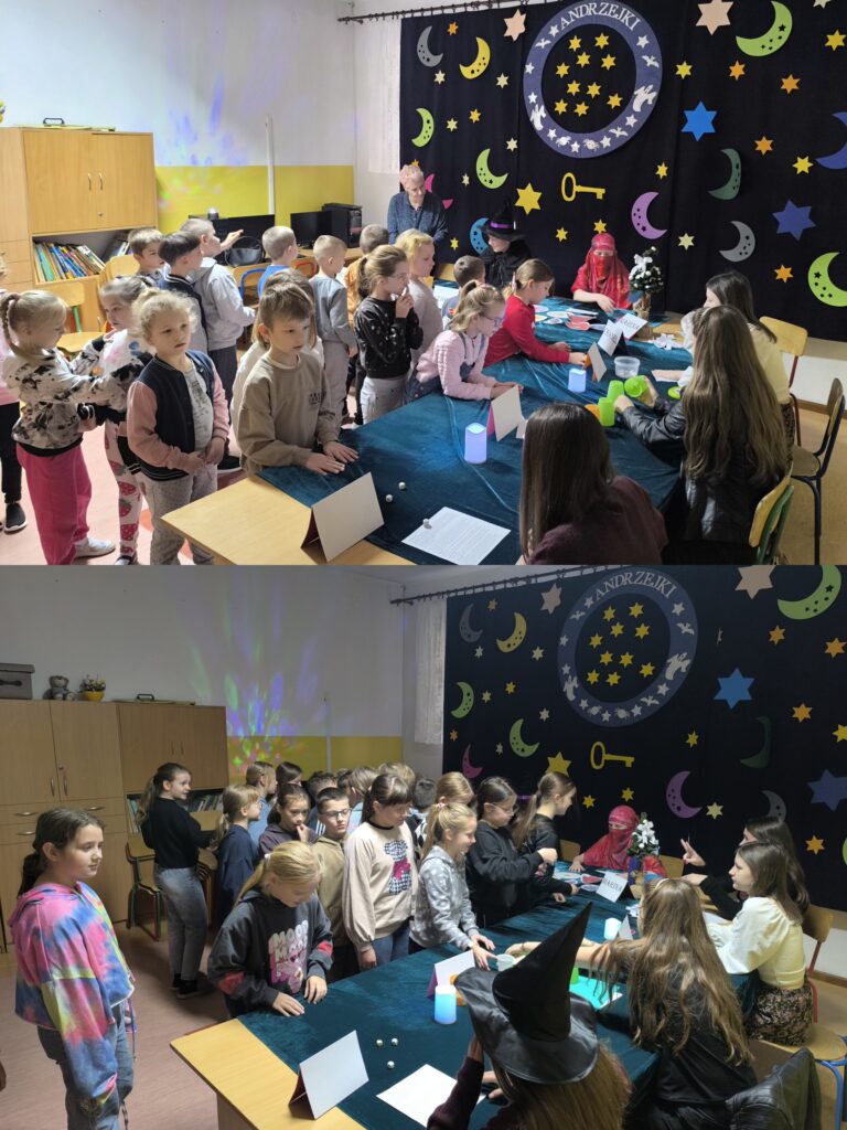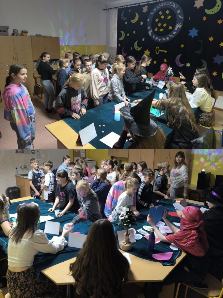 27 listopada Samorząd Uczniowski pod opieką Pani Karoliny Bazylczuk oraz Pani Joanny Szczypek w świetlicy szkolnej przygotował wróżby andrzejkowe dla uczniów klas 1-4. Każdy uczestnik andrzejkowych szaleństw z niecierpliwością przekłuwał papierowe serce, aby odczytać imię swojej sympatii, losował magiczne bileciki z nazwami zawodów przyszłości, szukał swojej szczęśliwej liczby, poznawał znaczenie swojego ulubionego koloru. Katalog wróżb był obszerny i bogaty, a każdy pragnął wywróżyć sobie coś wyjątkowego.