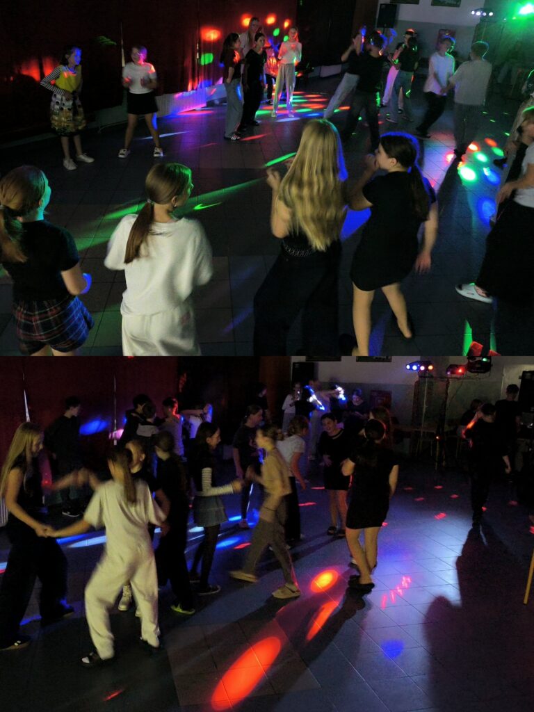Natomiast po południu Samorząd Uczniowski zorganizował dyskotekę dla klas 5-8. Słychać ją było w całej szkole. Oprawa muzyczna przygotowana przez uczniów klasy VII wprowadziła biorących udział w imprezie w odpowiedni nastrój, dzięki czemu wszyscy świetnie się bawili. Radości oraz uśmiechu było wiele!
