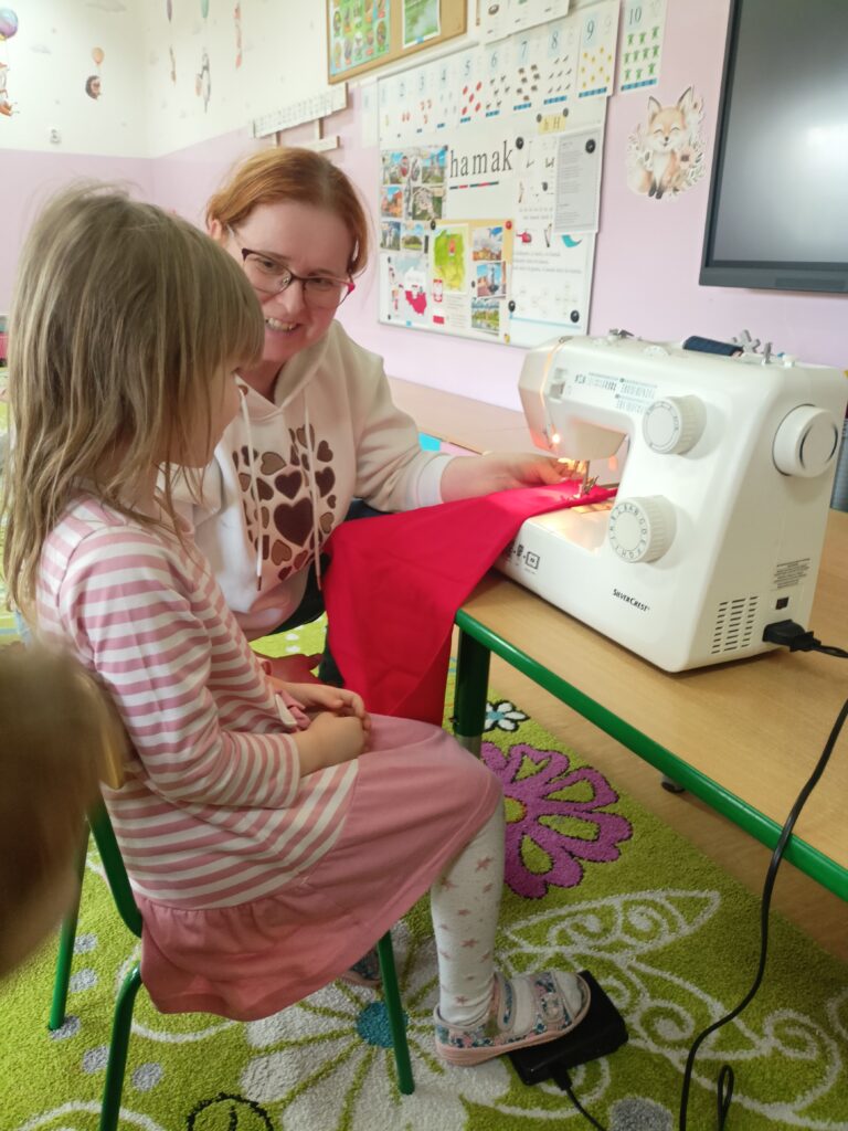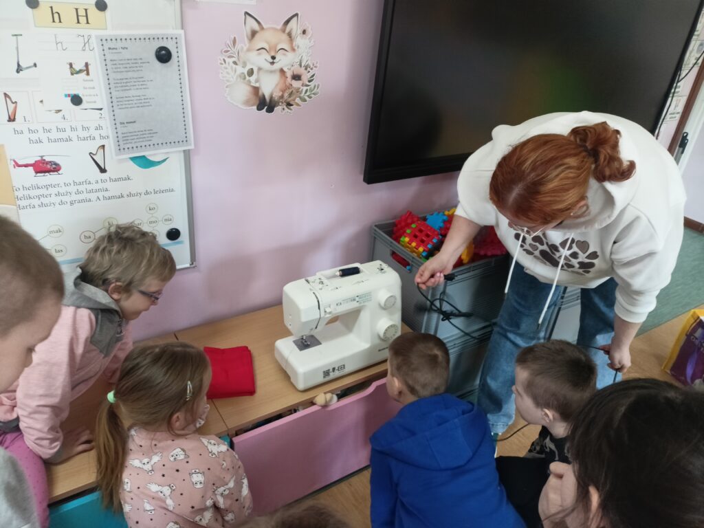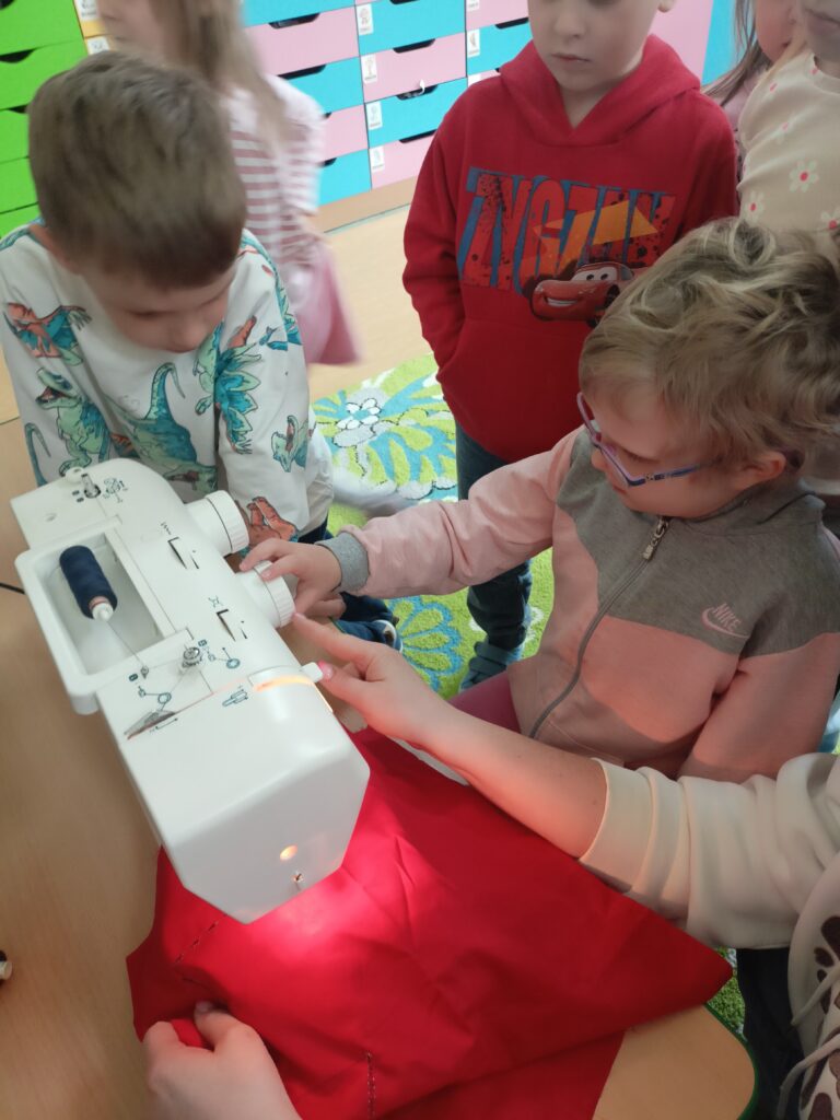 Dzieci z grupy Zajączki spotkały się z panią Anią, która zapoznała z zawodem krawcowej. Dzieci miały możliwość bezpośredniej obserwacji procesu szycia na maszynie, poznały tez wiele wyrazów określających akcesoria krawieckie. Największą atrakcją było oczywiście próbowanie swoich sił przy maszynie do szycia. Dzieci były bardzo zainteresowane szyciem. Na koniec spotkania dzieci czekała niespodzianka. Dzieci szyły różne rzeczy z filcu przy pomocy odpowiednich i specjalnych igieł do szycia. To było nie tylko ciekawe doświadczenie, ale również doskonałe ćwiczenie koncentracji, precyzji i koordynacji wzrokowo- ruchowej. Pani Ani serdecznie dziękujemy za wspaniałe spotkanie. Anna Wedziuk